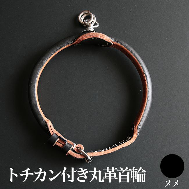 トチカン 丸革 L 犬の首輪 (革幅:約18m/m 内径:約48-46-44-42cm)【馬具職人ハンドメイド】